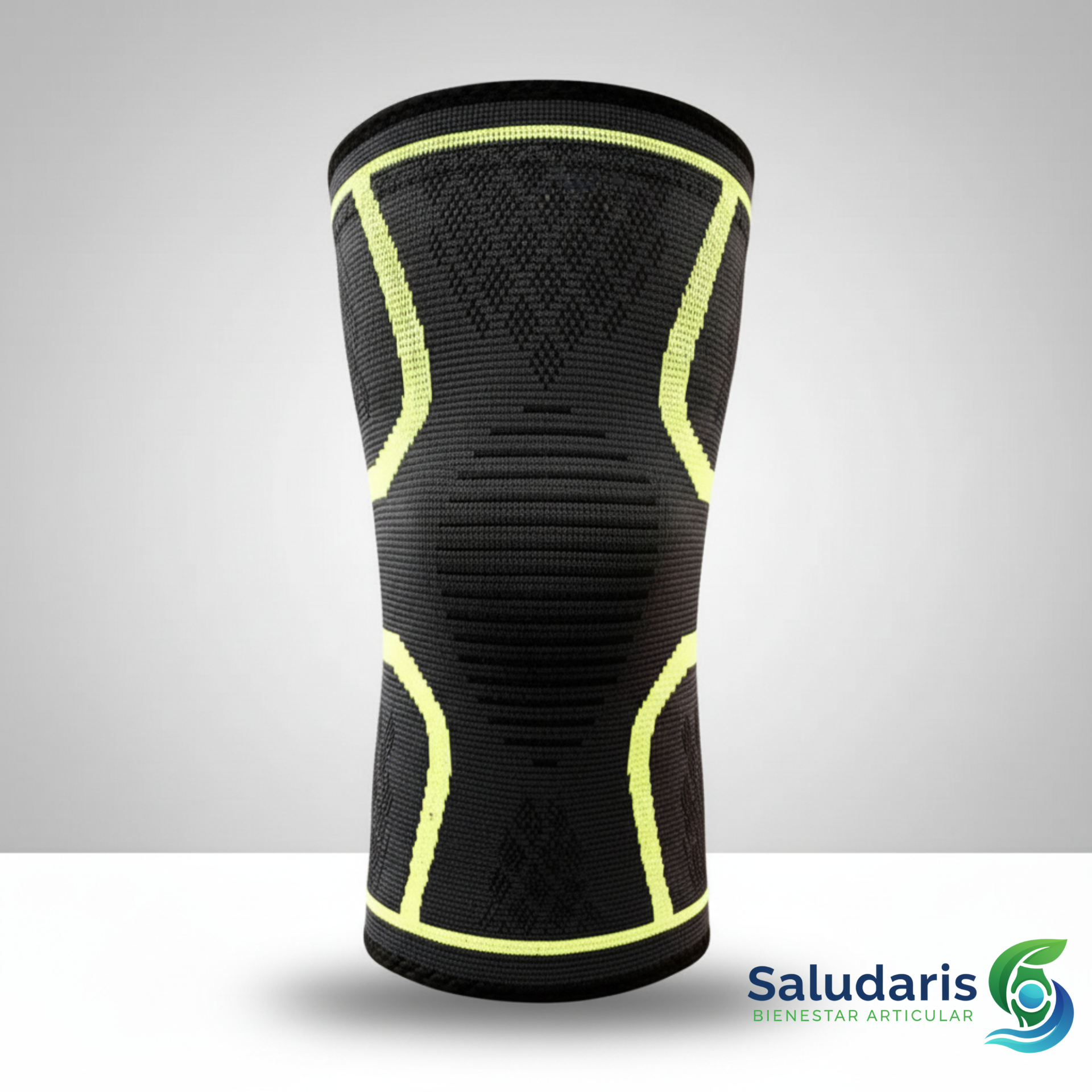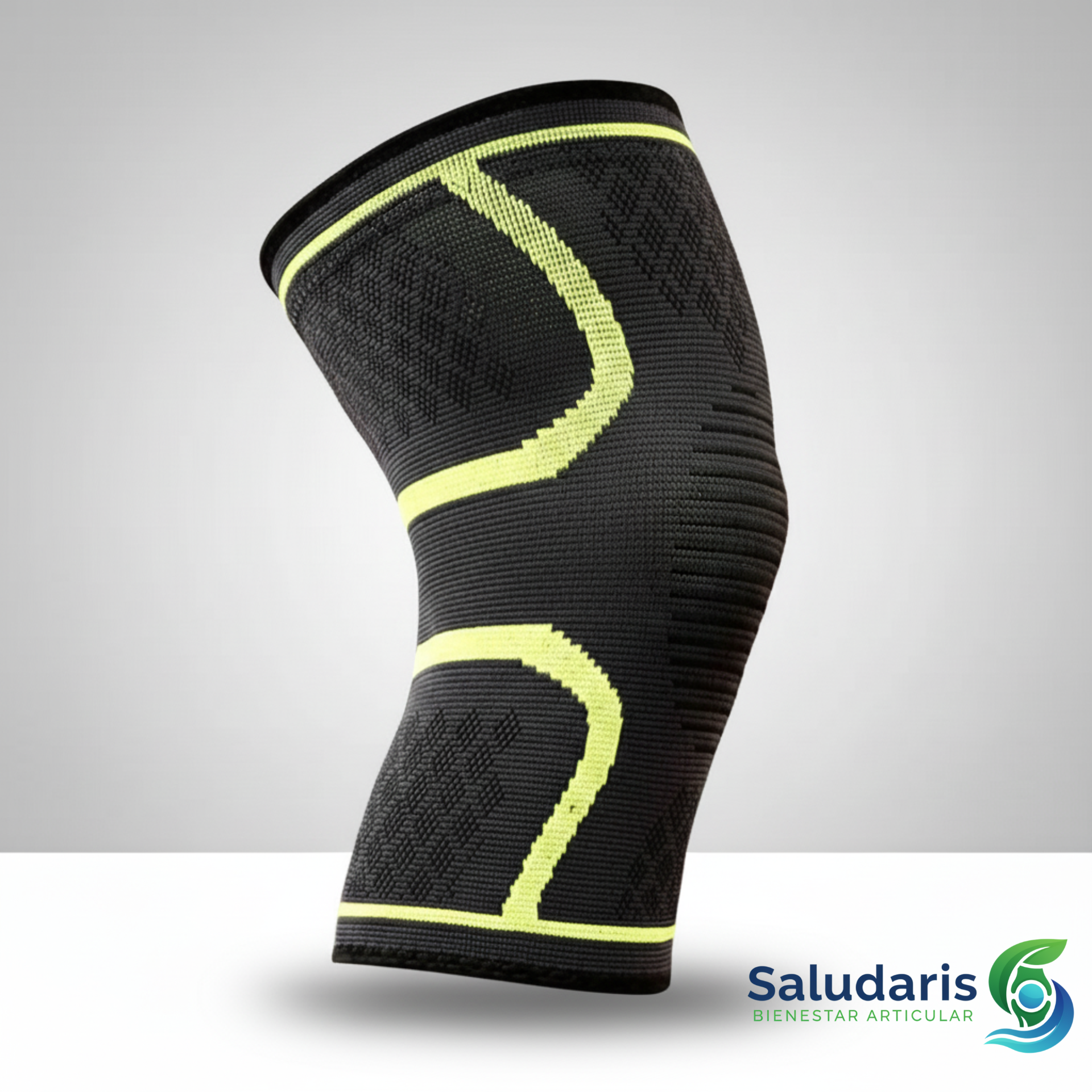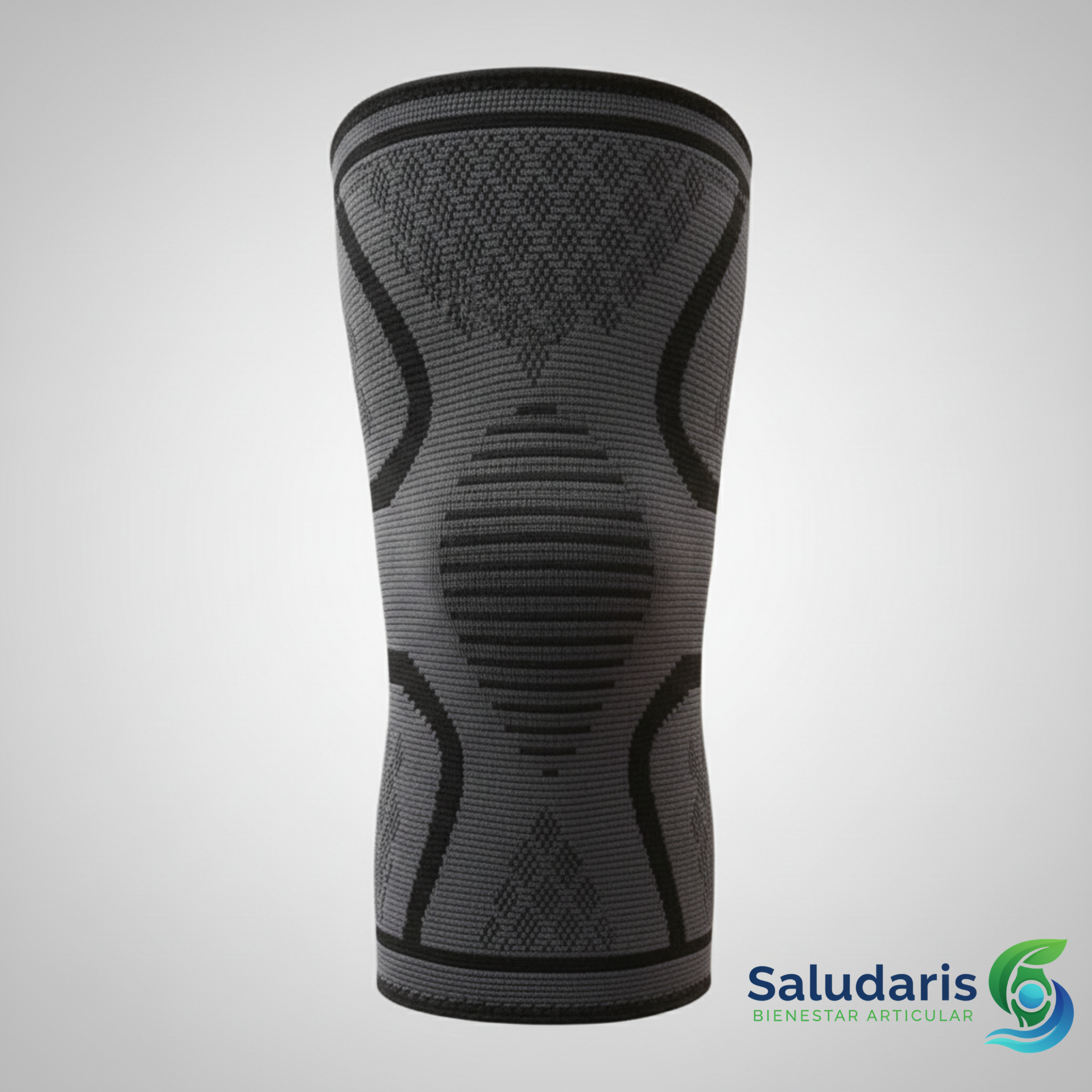 El ajuste elástico envuelve totalmente la rodilla, aportando estabilidad y libertad de movimiento gracias a su textura flexible y ligera.